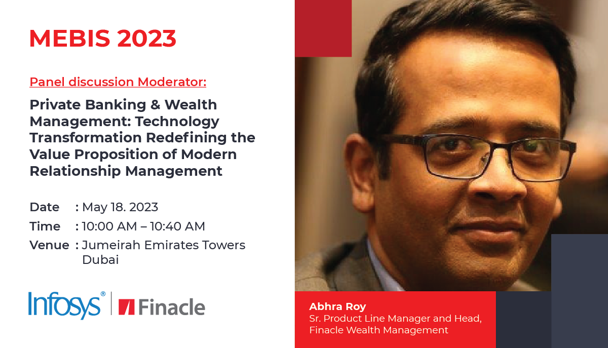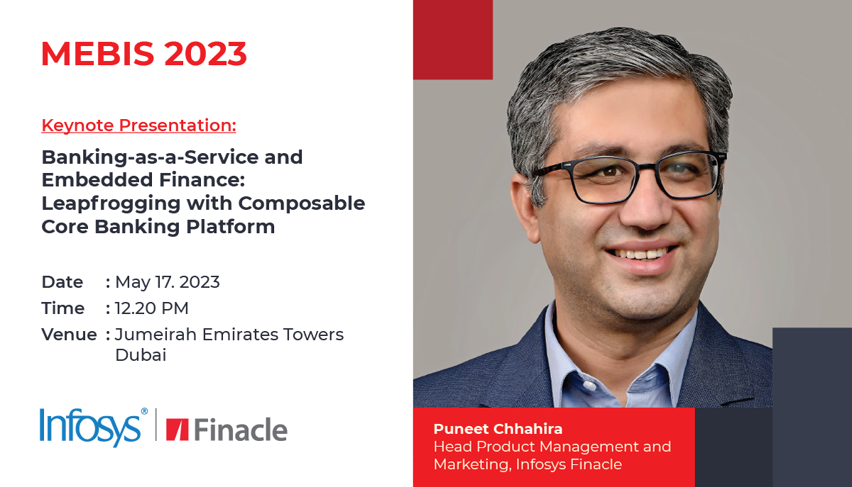 Infosys Finacle is a gold sponsor at MEBIS 2023, an industry conference aimed at key banking executives, bringing together 400+ regional banking and technology leaders in a two day in-person conference focused on the technologies and processes that are driving the digitization of the banking industry.